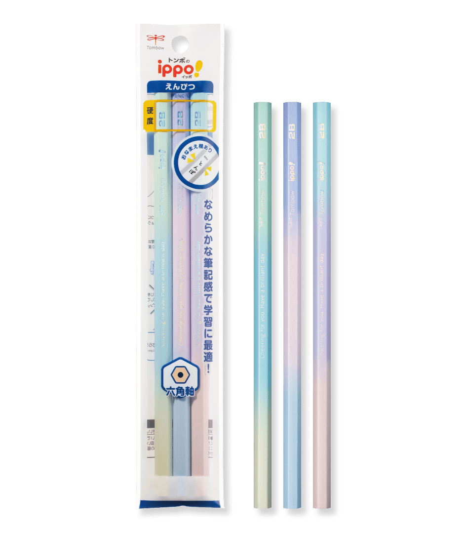 柄パターン グラデーションカラー 軸 形 六角軸 硬 度 2B 価 格 198円(税抜価格180円) 仕 様 通常の長さ(約175mm)の